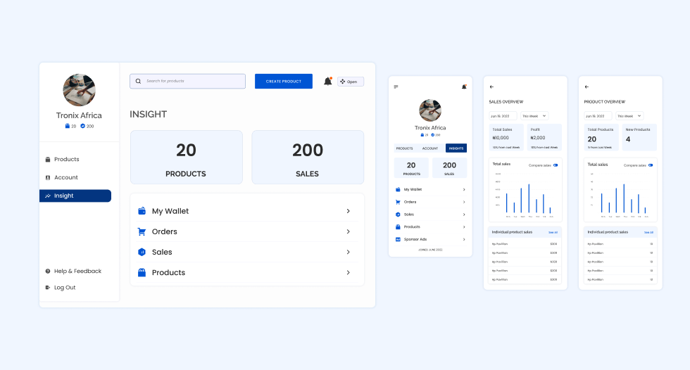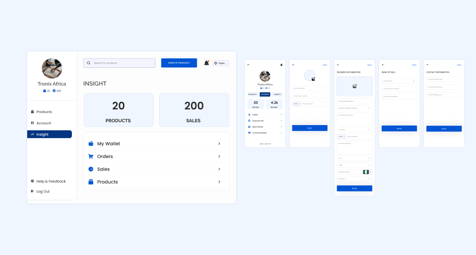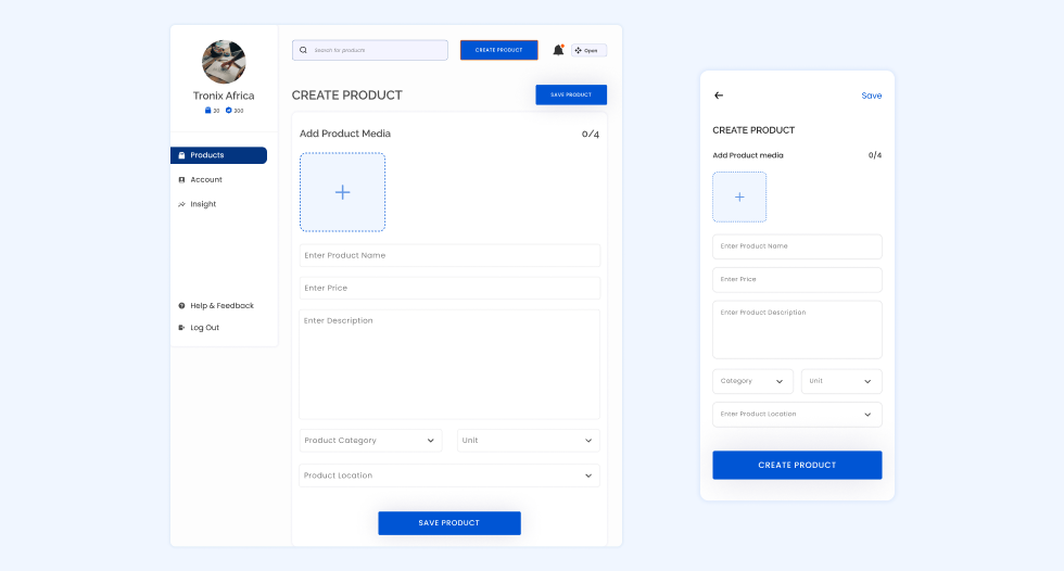 - Create a product : We want users to be able to create products of their goods easily on the platform thereby getting all their products on a single storefront website